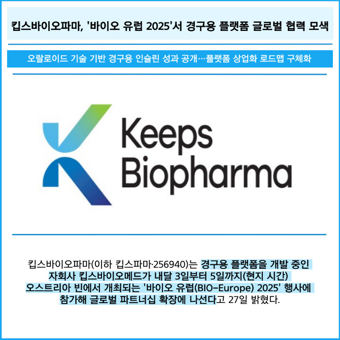 [카드] 킵스바이오파마, '바이오 유럽 2025'서 경구용 플랫폼 글로벌 협력 모색