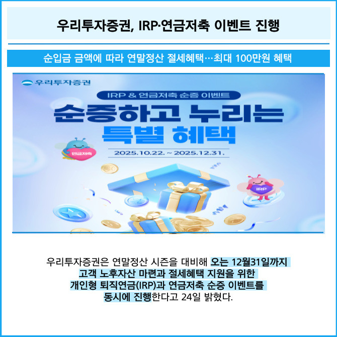 [카드] 우리투자증권, IRP·연금저축 이벤트 진행