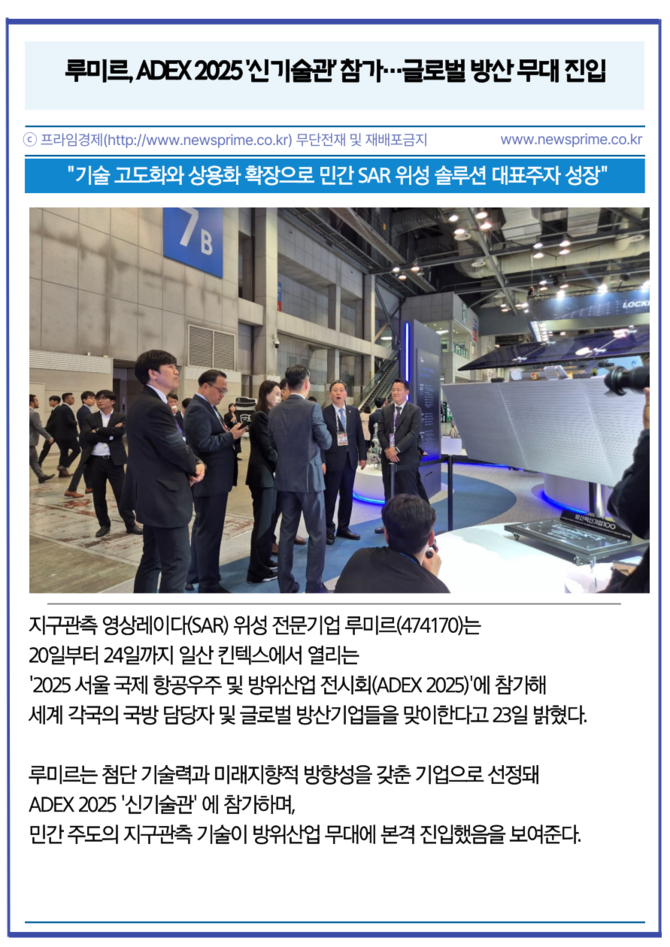 [카드] 루미르, ADEX 2025 '신기술관' 참가…글로벌 방산 무대 진입
