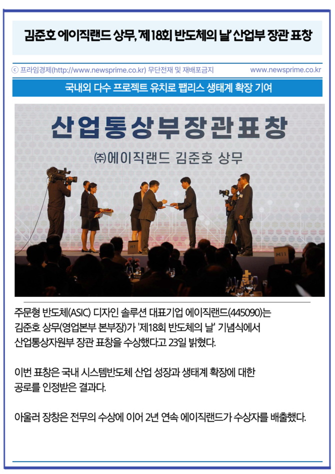 [카드] 김준호 에이직랜드 상무, '제18회 반도체의 날' 산업부 장관 표창