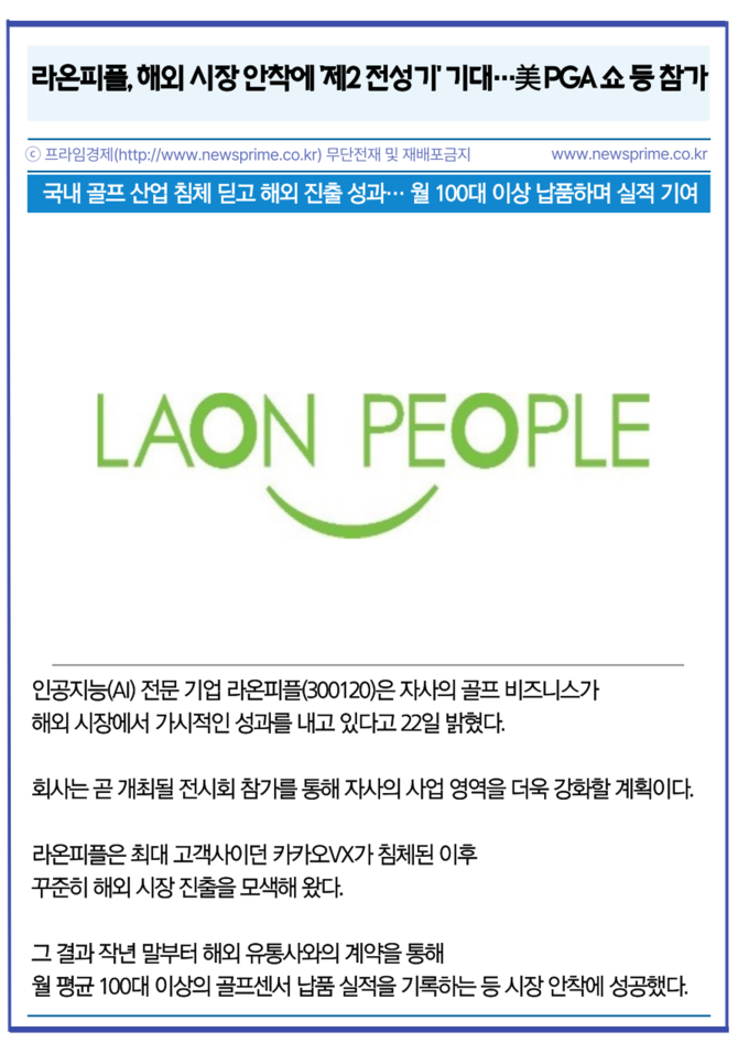 [카드] 라온피플, 해외 시장 안착에 '제2 전성기' 기대…美 PGA 쇼 등 참가