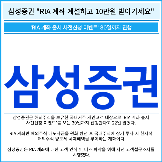 [카드] 삼성증권 "RIA 계좌 계설하고 10만원 받아가세요"