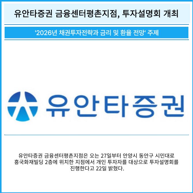 [카드] 유안타증권 금융센터평촌지점, 투자설명회 개최