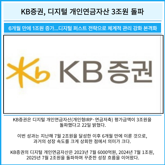 [카드] KB증권, 디지털 개인연금자산 3조원 돌파