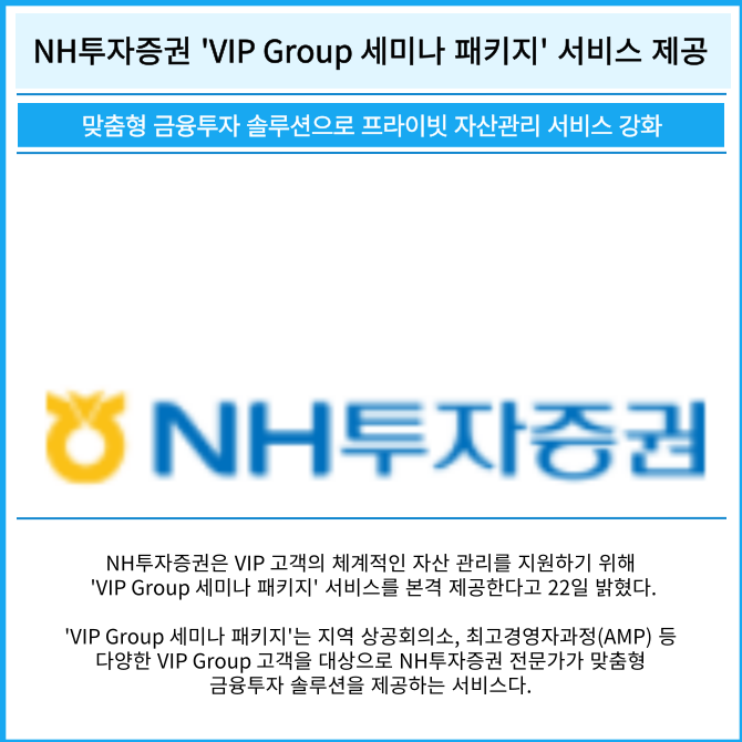 [카드] NH투자증권 'VIP Group 세미나 패키지' 서비스 제공