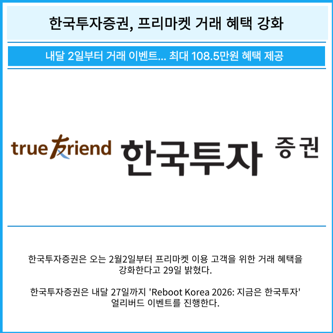 [카드] 한국투자증권, 프리마켓 거래 혜택 강화