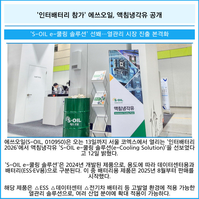 [카드] '인터배터리 참가' 에쓰오일, 액침냉각유 공개