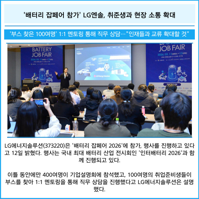 [카드] '배터리 잡페어 참가' LG엔솔, 취준생과 현장 소통 확대