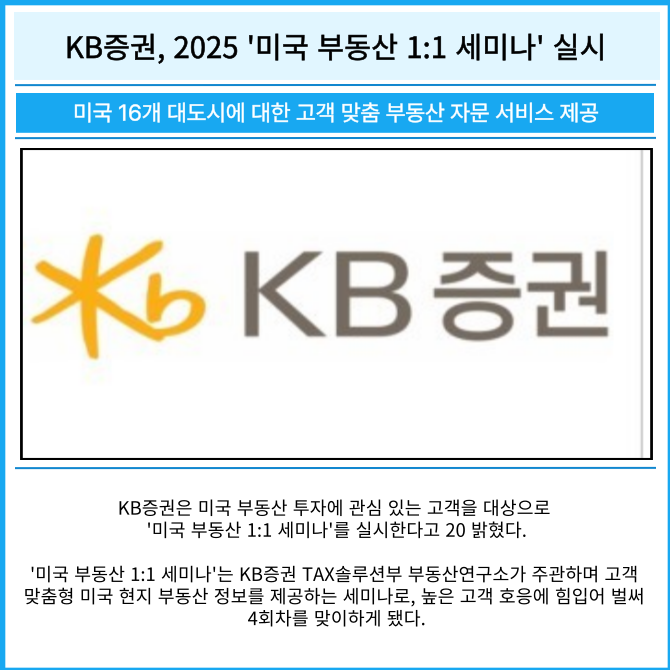 [카드] KB증권, 2025 '미국 부동산 1:1 세미나' 실시