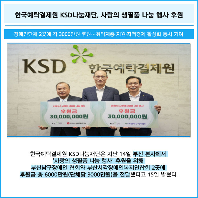 [카드] 한국예탁결제원 KSD나눔재단, 사랑의 생필품 나눔 행사 후원