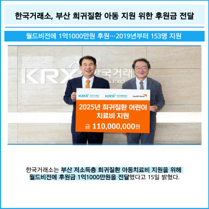 [카드] 한국거래소, 부산 희귀질환 아동 지원 위한 후원금 전달