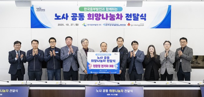 한국중부발전, 노사 공동 '희망 나눔차' 전달…지역 복지시설에 전기차 지원