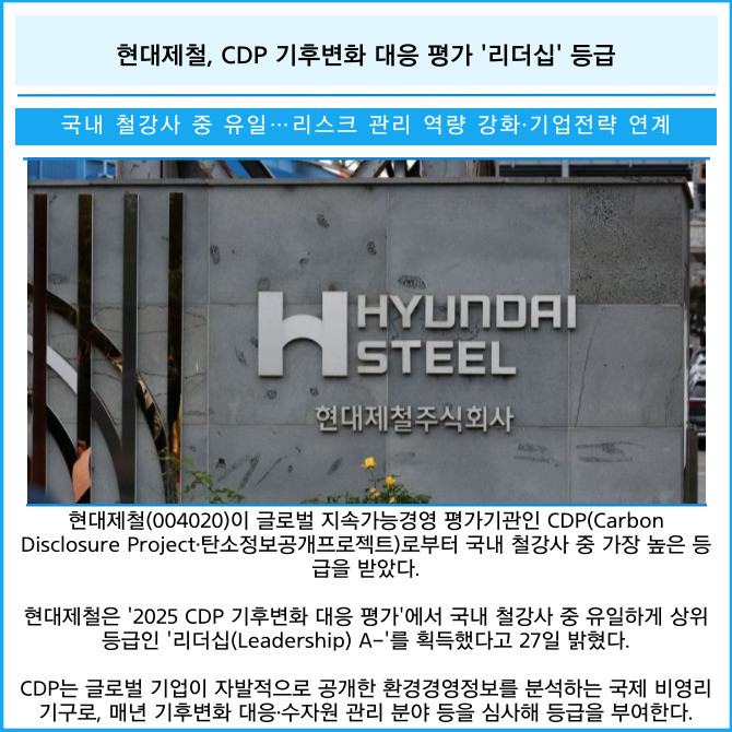 [카드] 현대제철, CDP 기후변화 대응 평가 '리더십' 등급