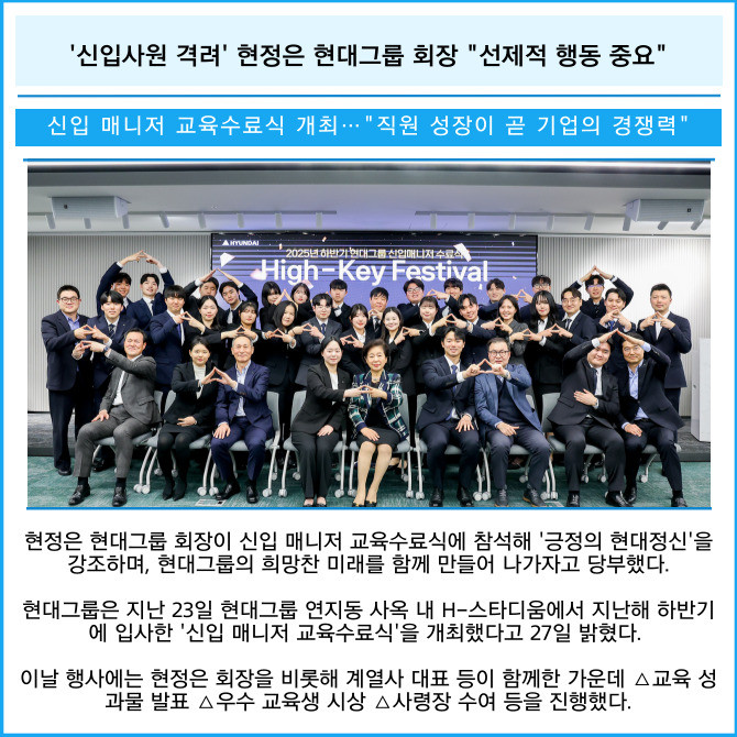 [카드] '신입사원 격려' 현정은 현대그룹 회장 "선제적 행동 중요"