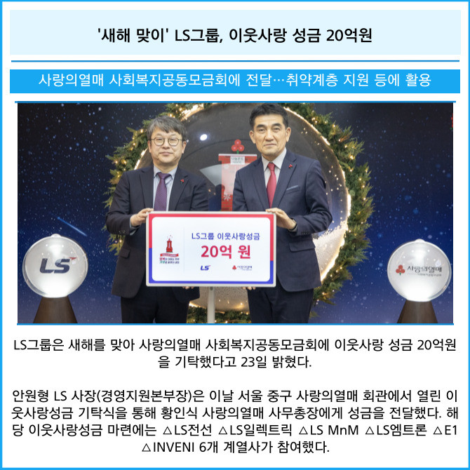 [카드] '새해 맞이' LS그룹, 이웃사랑 성금 20억원