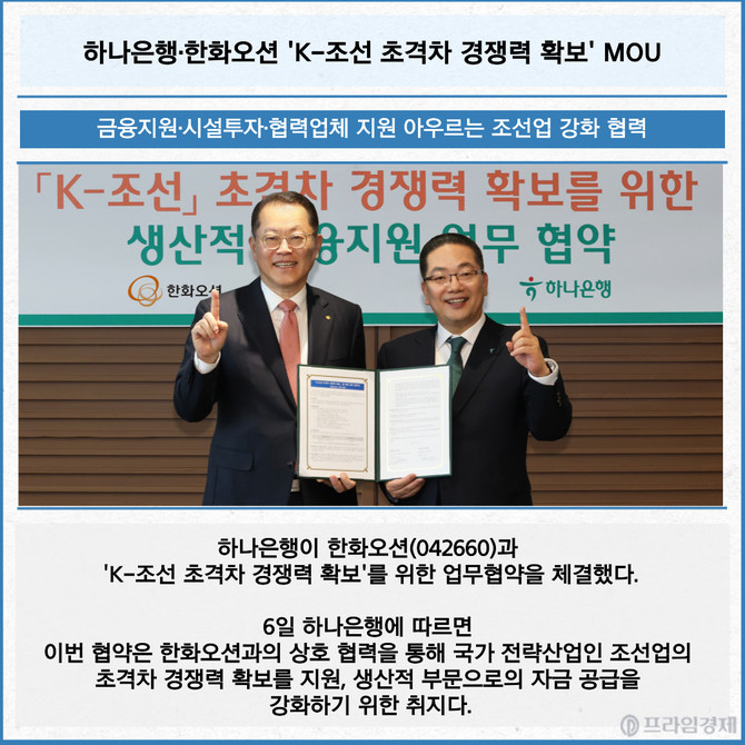 [카드] 하나은행·한화오션 'K-조선 초격차 경쟁력 확보' MOU