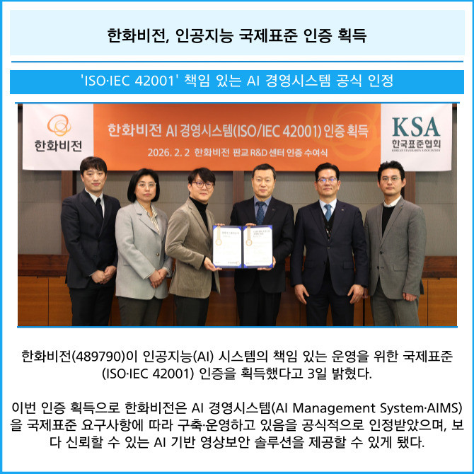 [카드] 한화비전, 인공지능 국제표준 인증 획득