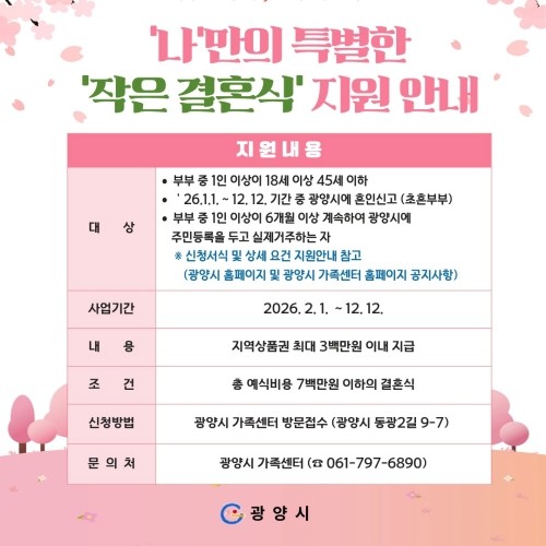 [광양시 소식] 나만의 '작은결혼식' 신혼부부 7쌍 비용 지원…