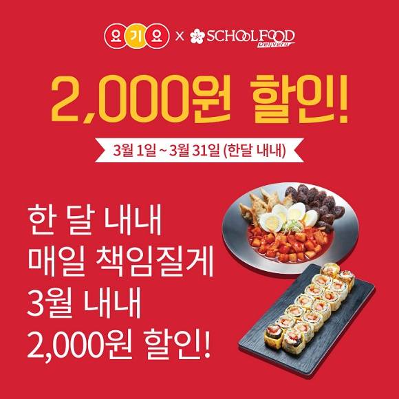 스쿨푸드, 요기요에서 주문하고 할인받자