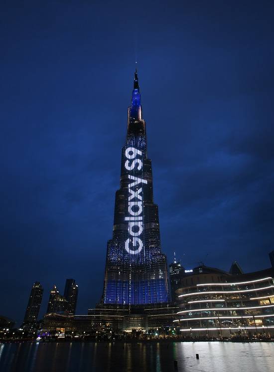 삼성전자 두바이 부르즈 칼리파에 초대형 갤럭시 S9 광고