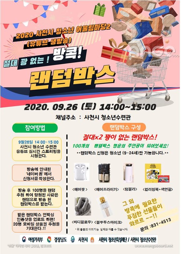 사천시 청소년어울림마당2 '방콕! 랜덤박스' 유튜브 생방송