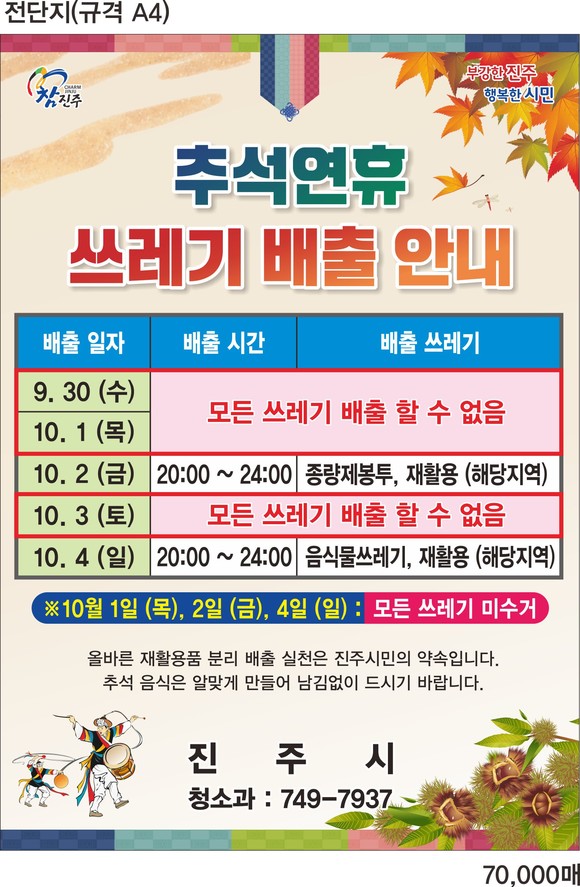 진주시, 추석연휴 쓰레기 1일·2일·4일 미수거
