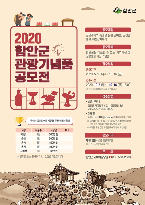 함안군, 관광기념품 공모전 개최…16일까지 제품 접수