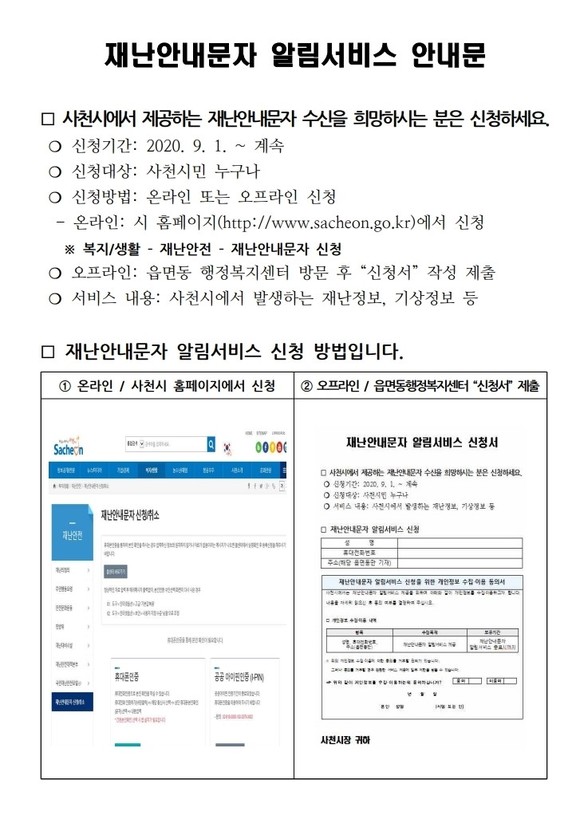 사천시, 재난안내문자 알림서비스 확대 시행