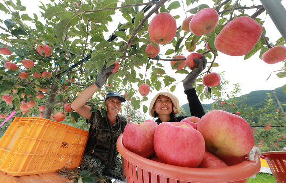 [포토] 함양군, 태풍 '마이삭'…조기 수확 추석용 홍로사과
