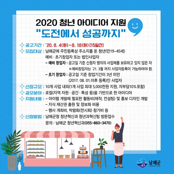 남해군 청년 아이디어 지원 '도전‧성공' 참가자 모집