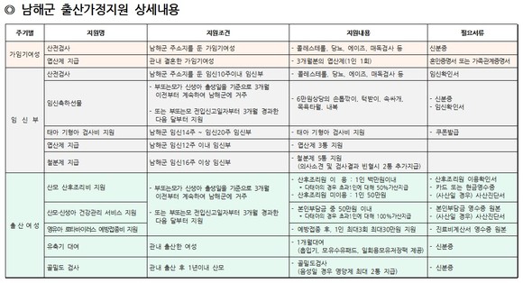 남해군, 출산가정 주기별 지원…'아이 낳기 좋은 남해'