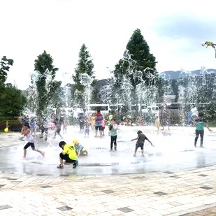진주시 바닥분수 물줄기, 아이들 웃음꽃 활짝