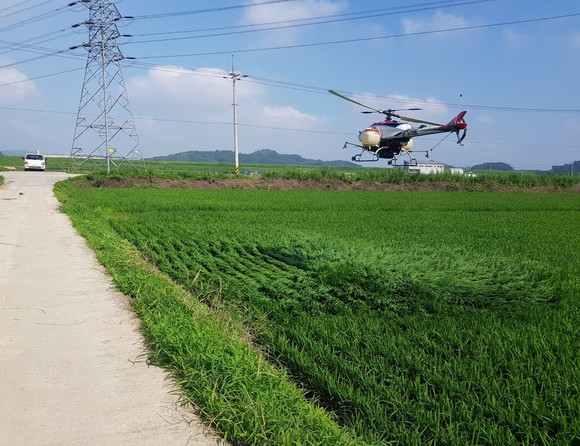 함안군, 무인헬기 병해충 공동방제…벼 농지 4322헥타 실시
