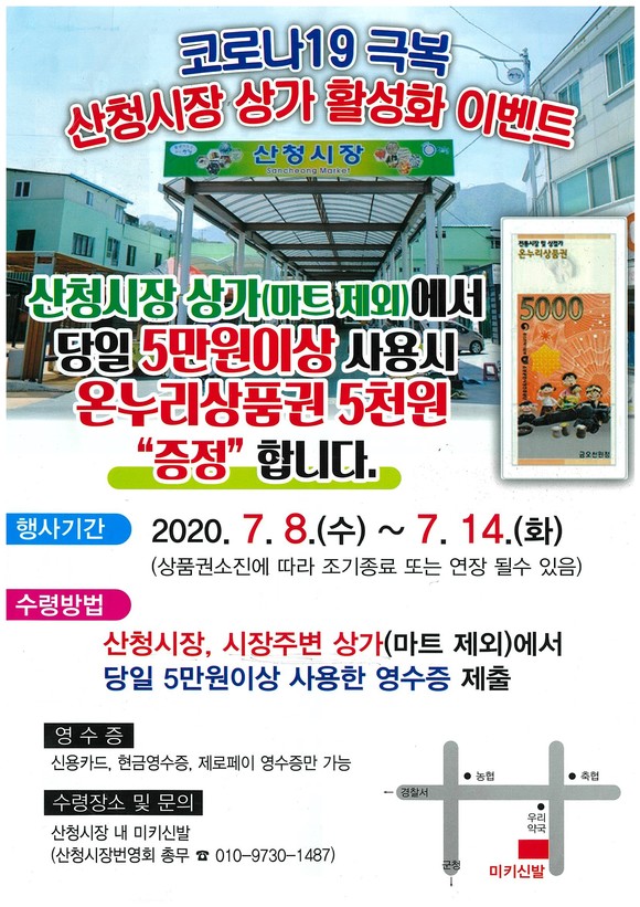 산청군, 시장·상가 온누리상품권 페이백 이벤트 개최