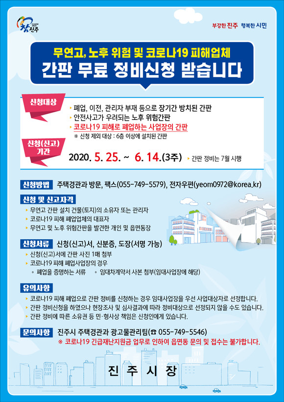 진주시, 무연고·노후위험 코로나19피해 간판 무료 철거