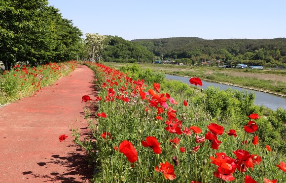 함안군 함안천, 양귀비꽃 선홍빛 물결 넘실