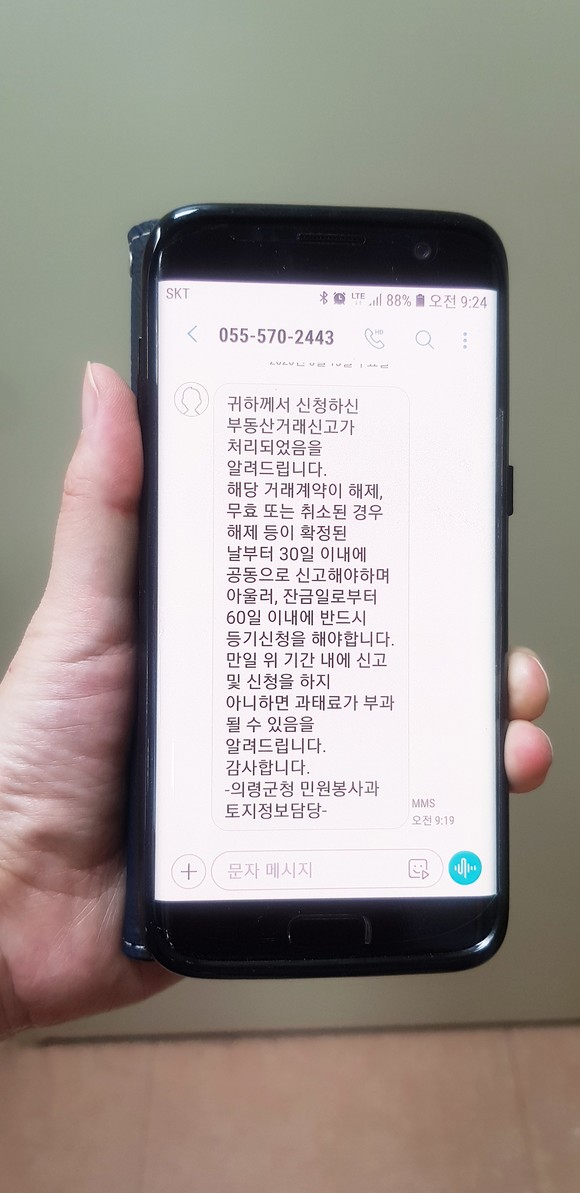 의령군, 부동산 거래신고 후 의무사항 문자알림서비스 시행