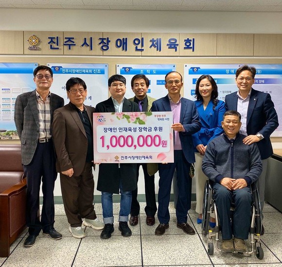 진주시장애인체육회, 시각장애인 대학생 장학금 전달