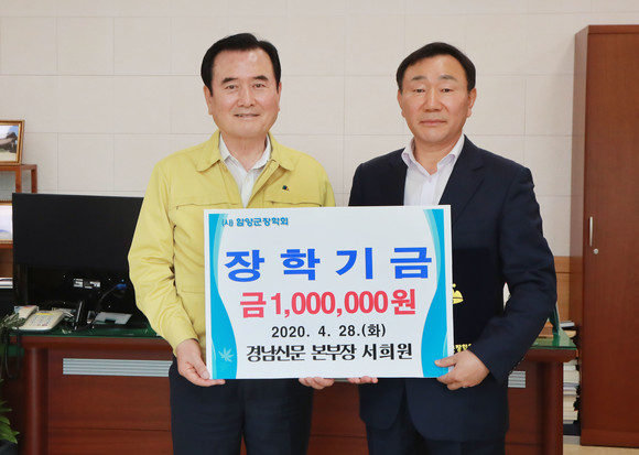 경남신문 서희원 본부장, 함양군장학회에 장학금 기탁