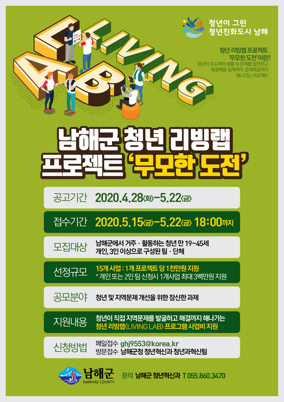 남해군 청년 리빙랩 프로젝트 '무모한 도전' 참가자 모집