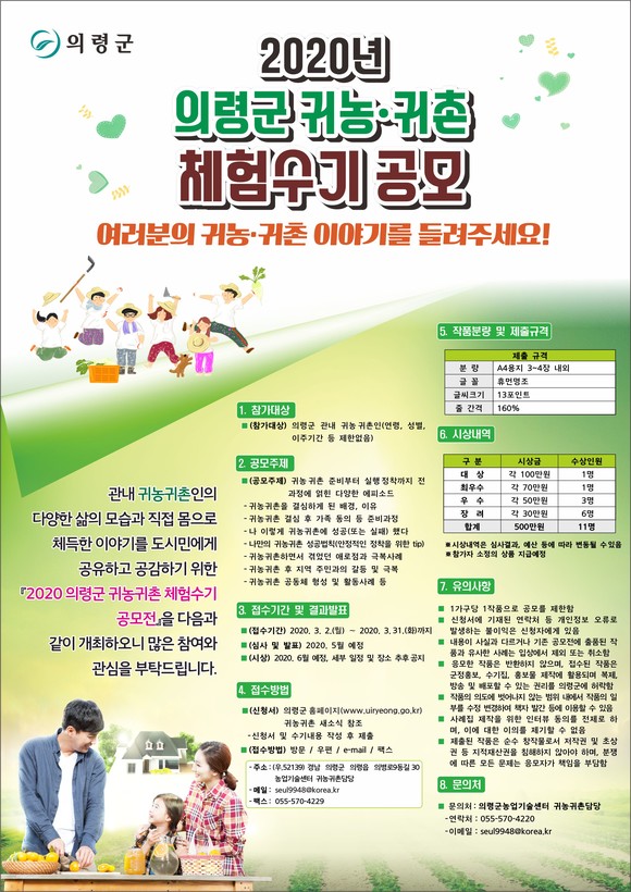 의령군, 귀농·귀촌 체험수기 31일까지 공모