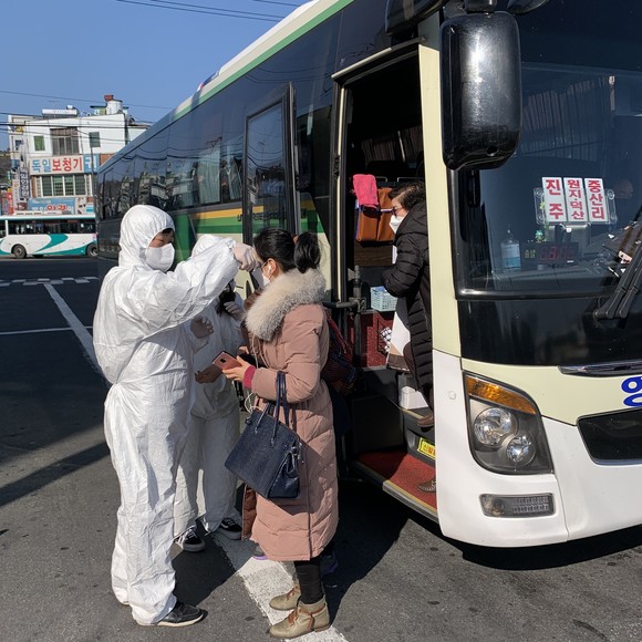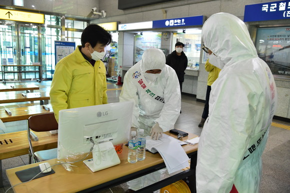 진주시, 코로나19 확산방지 총력…교통환경국 직원 구슬땀