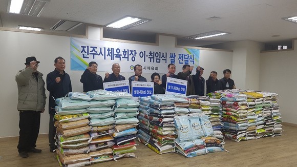 김택세 진주시체육회장, 보훈단체·봉사단체 취임 축하 쌀 전달