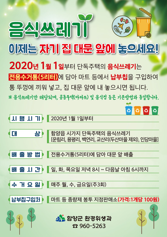 함양군, 1월부터 음식쓰레기 집 앞 수거