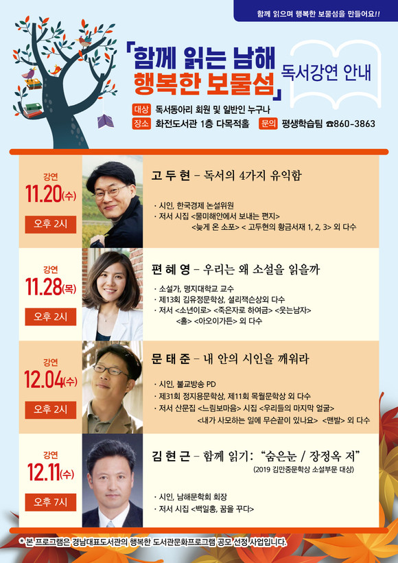 남해군 '함께 읽는 남해, 행복한 보물섬' 독서강연 개최