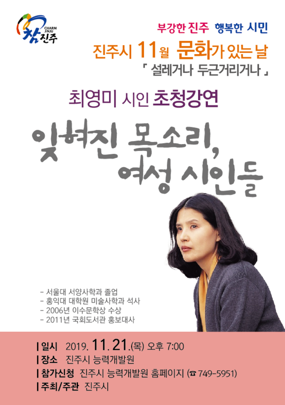 진주시 능력개발원 최영미 시인 '잊혀진 목소리, 여성 시인들' 강연