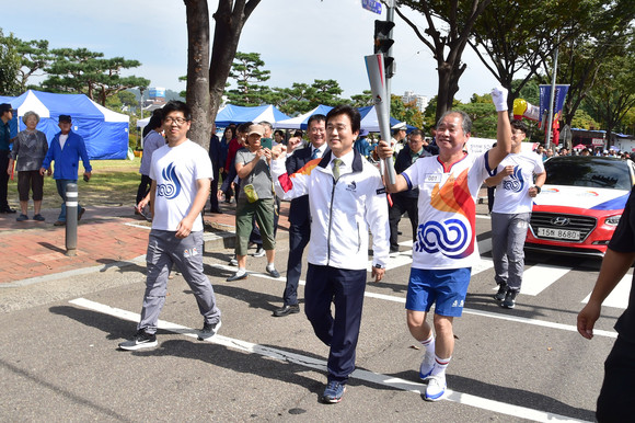 진주시, 제100회 전국체육대회 성화봉송 전달