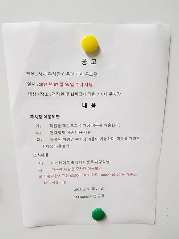 BAT코리아 사천공장 "협력업체 사내 주차금지 '갑질' 아냐"