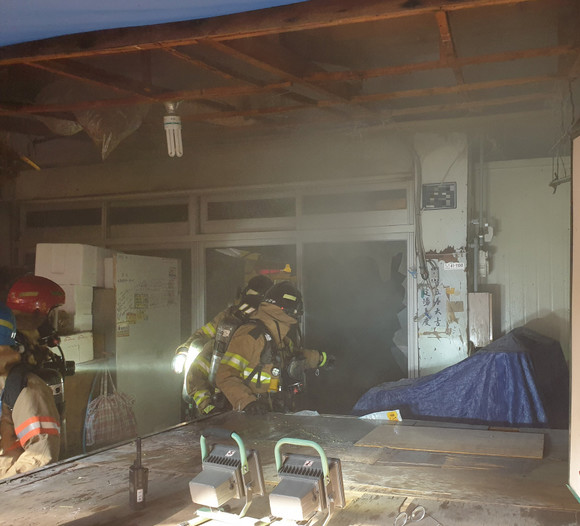 진주 중앙시장 '보이는 소화기'로 신속 진압