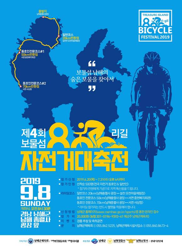 남해군 '제4회 보물섬 800리길 자전거대축전' 참가자 접수